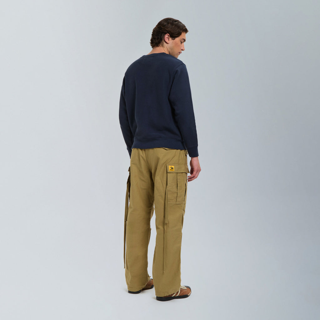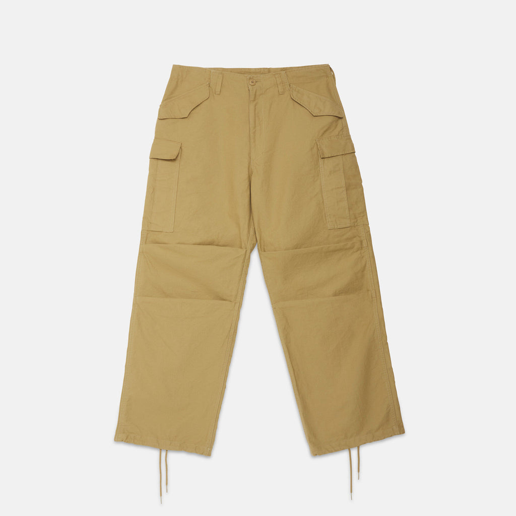 Inspired by the U.S. Army’s M-65 field jacket, these cargo pants are a modern take on the M-51 series, which was updated in 1965. This version has been reinterpreted using a heavyweight cotton satin fabric, offering a sturdy feel and a refined military look.