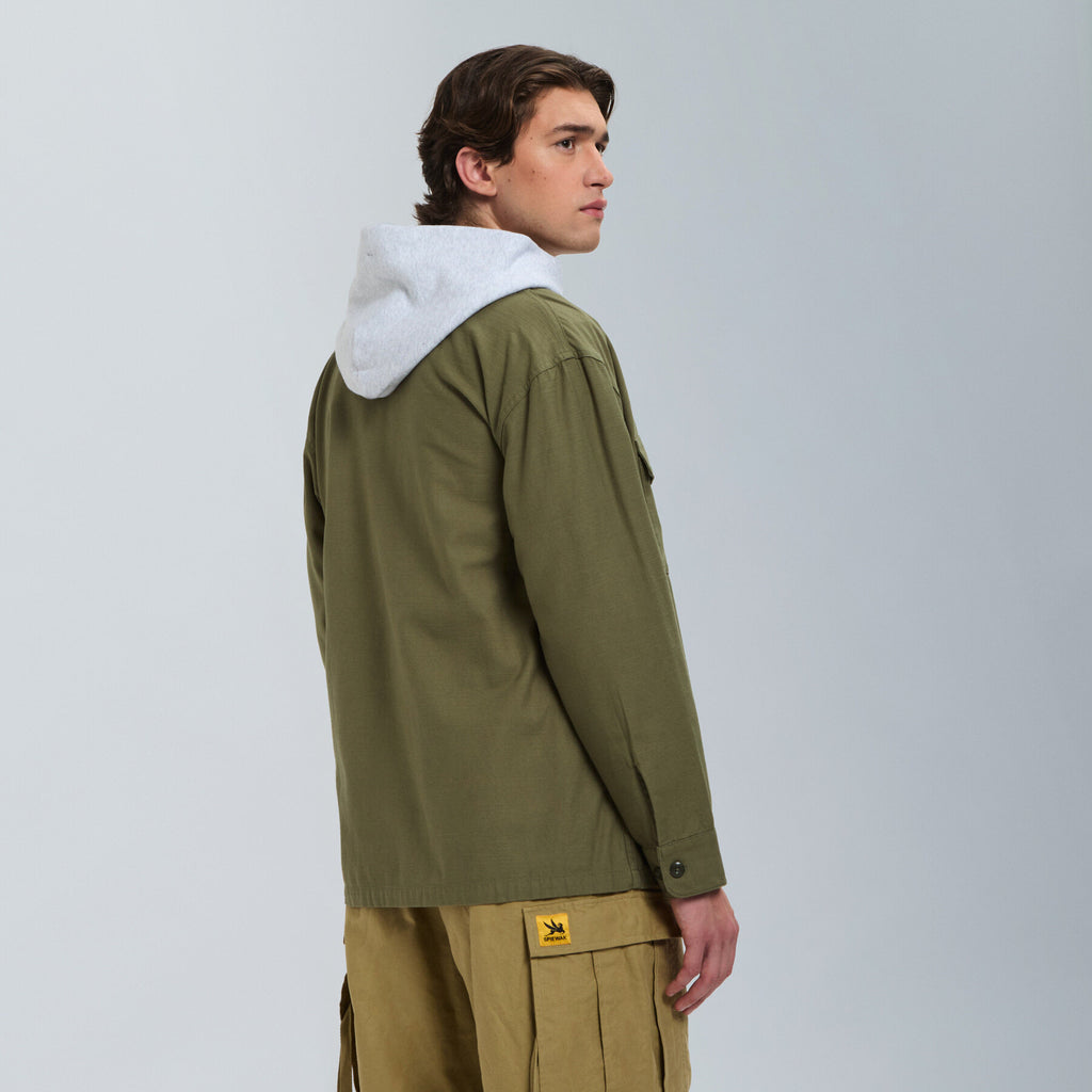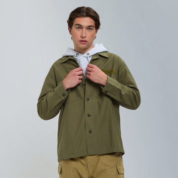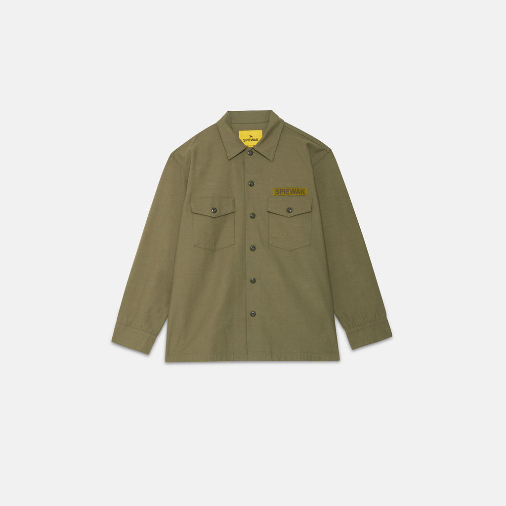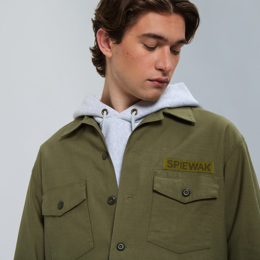 Inspired by the 1960s U.S. Army utility shirt, this design features a relaxed, oversized silhouette that nods to its military roots. Thoughtfully placed vintage-style details enhance its worn-in character, making it a timeless staple with a rugged, authentic feel.