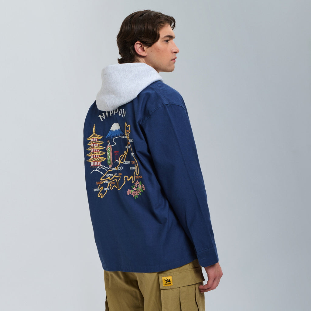 Inspired by the classic 1960s U.S. Army utility shirt, this piece is reimagined with a relaxed, oversized silhouette for a modern fit. Detailed embroidery and vintage-style accents add character, giving the shirt an authentic military feel with a contemporary twist.