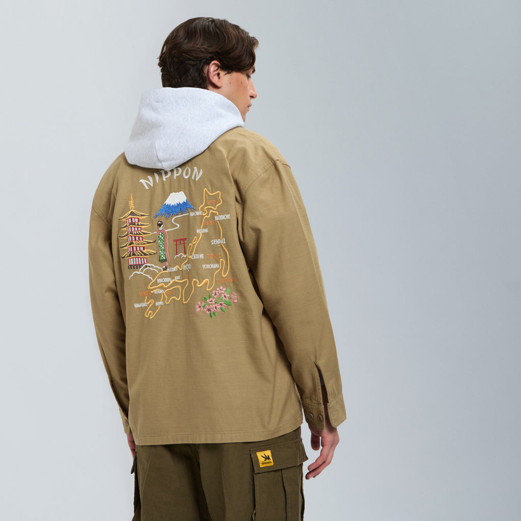 Inspired by the classic 1960s U.S. Army utility shirt, this piece is reimagined with a relaxed, oversized silhouette for a modern fit. Detailed embroidery and vintage-style accents add character, giving the shirt an authentic military feel with a contemporary twist.